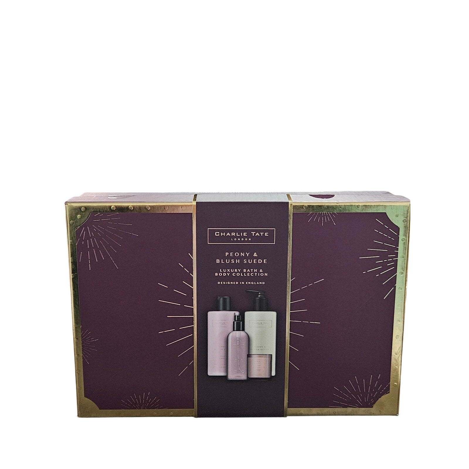 This is a Charlie Tate London Peony & Blush Suede Luxury Bath & Body Collection gift set.
