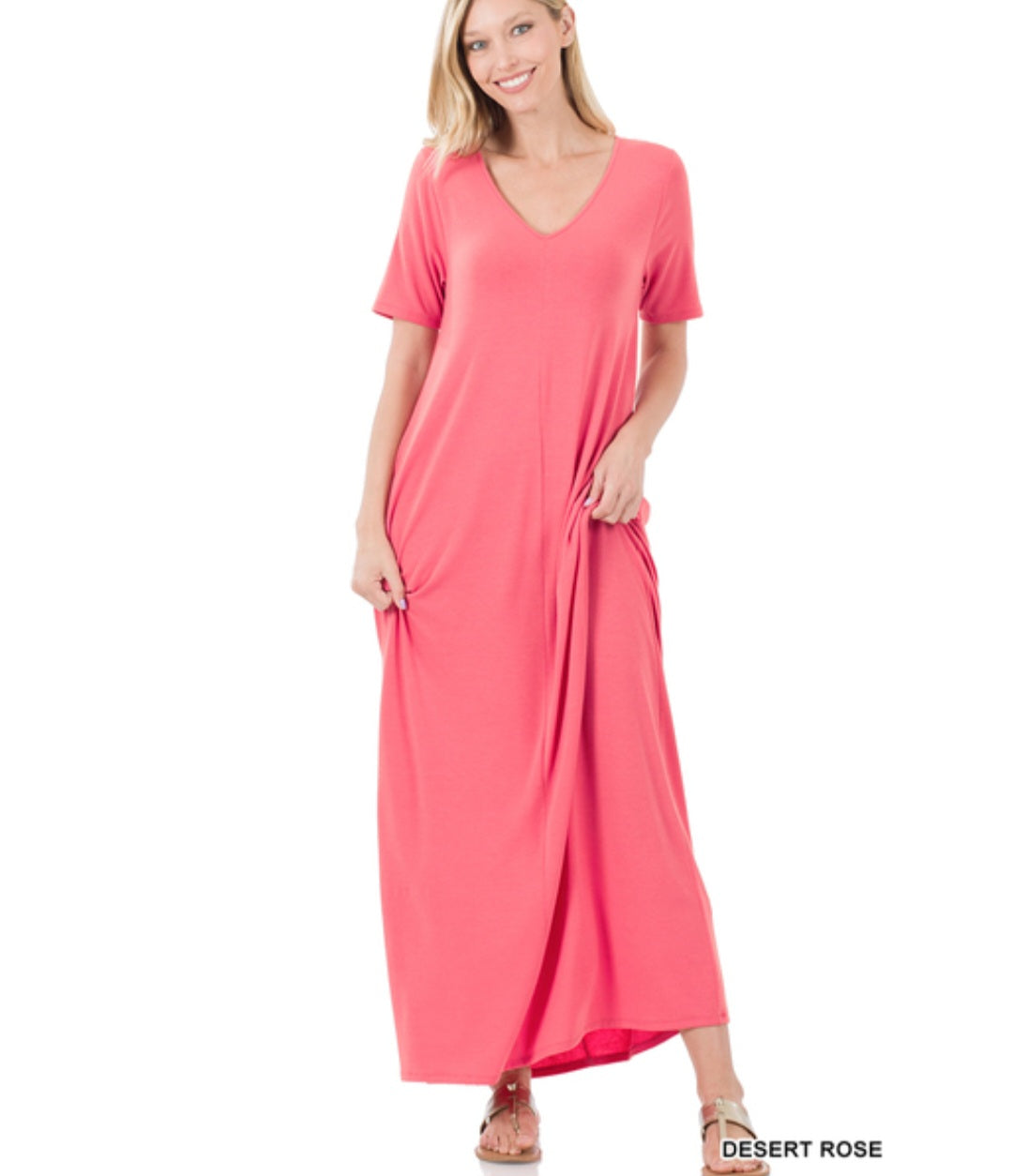 Zenana Short Sleeve Maxi Dress with Pockets!
